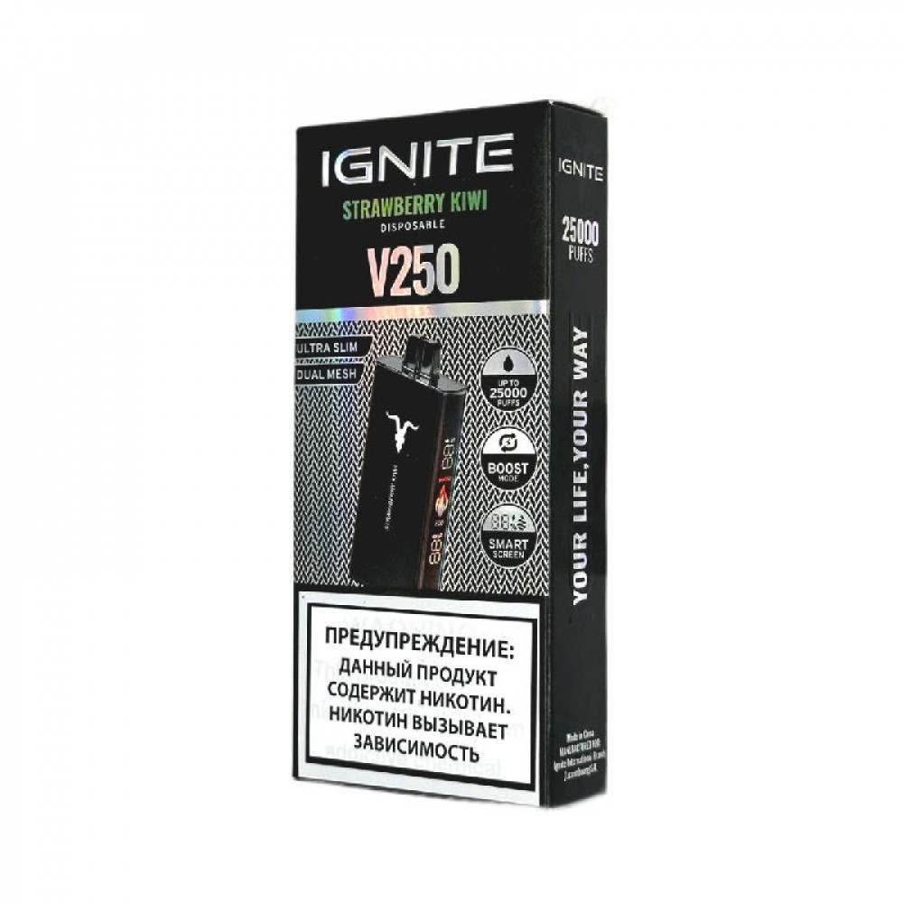Электронная сигарета Ignite V250 Black 25000 - Strawberry Kiwi (Клубника киви) - купить в Гусеве
