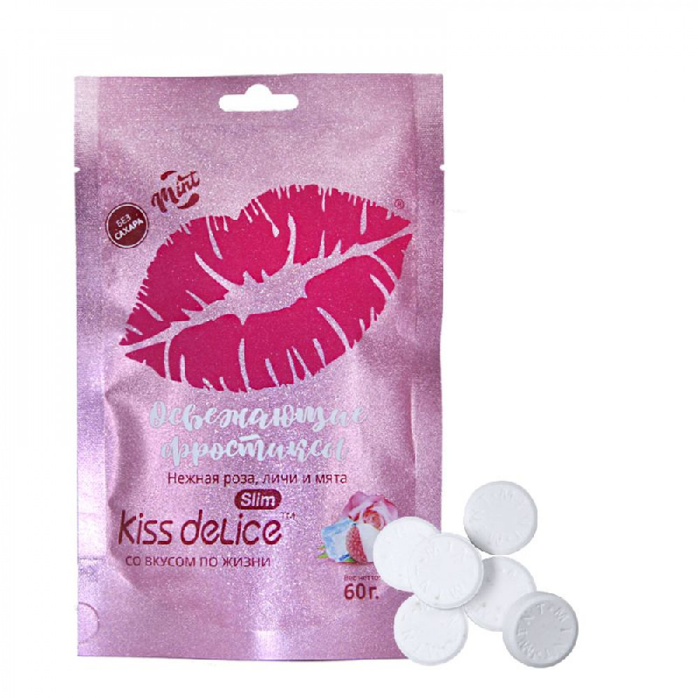 Аромат/вкусРоза, личи и мята Без сахараДа БрендKiss Delice